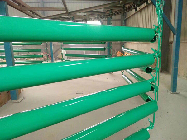 引進先進大型自動化靜電噴涂,自動化熱浸鍍鋅生產設備;年生產量350多萬延長米。